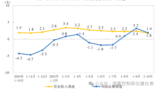 11月27日,国家统计局公布了2025年1-10月份全国规模以上工业企业实现利润总额增长状况。1-10月份,全国规模以上工业企业实现利润总额59502.9亿元,同比增长1.9%。其中,1-10月份,仪器仪表制造业营业收入8675.8亿元,同比增长4.4%,实现利润总额843.6亿元,同比增长3.3%。