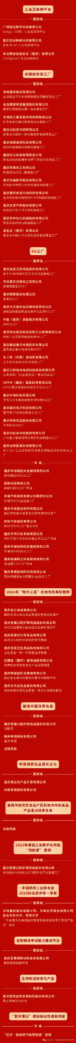 在重庆加快建设具有国际竞争力的先进制造业中心的征程上,2025年涌现出一批闪耀的“先锋力量”。他们中,有引领行业的冠军企业,有赋能转型的服务平台,有协同创新的特色集群,更有迈向绿色的智慧园区。